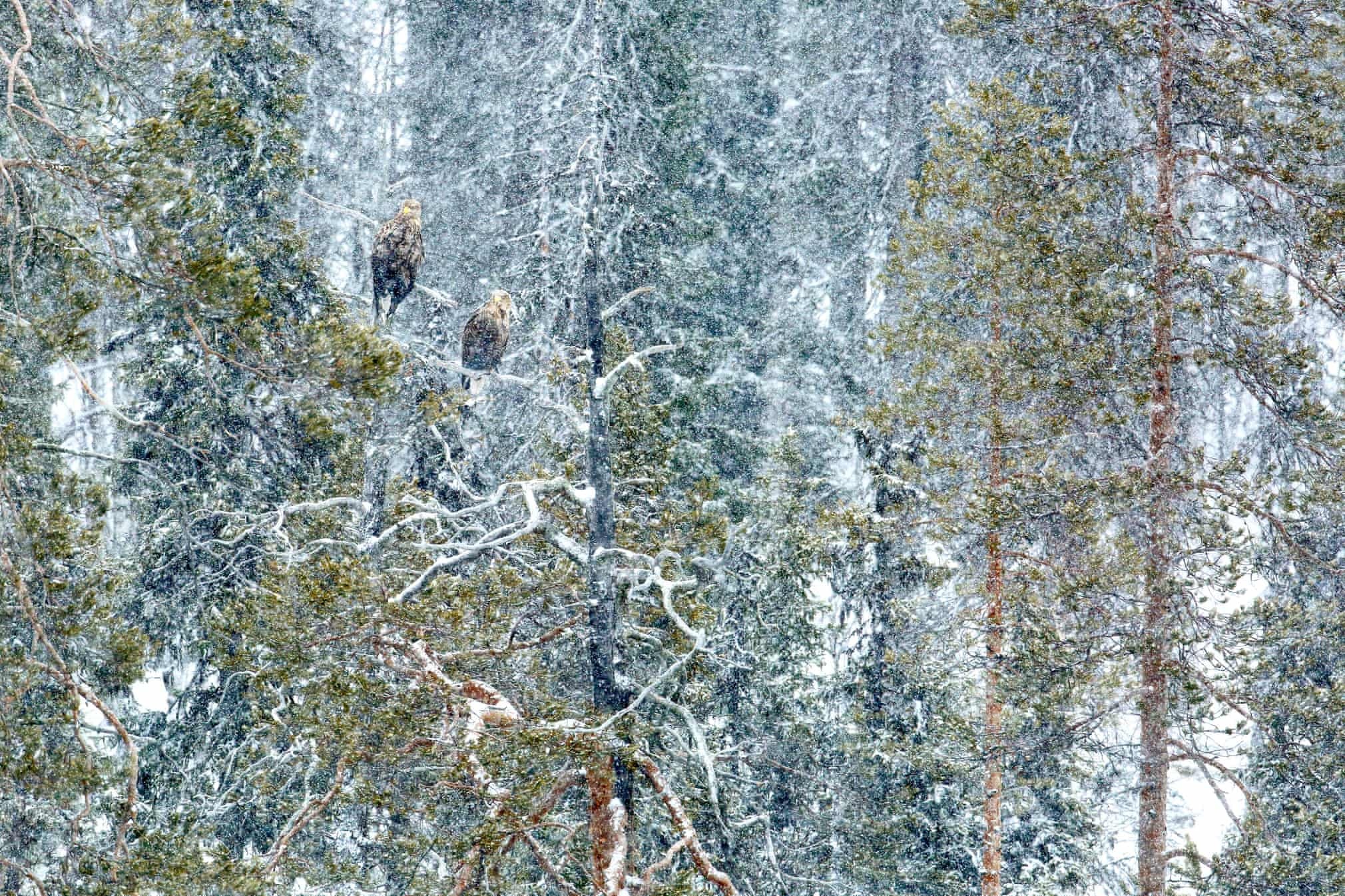 Победитель в категории "Птицы": испанский фотограф Джейми Кулебрас. На снимке запечатлен Антонов козодой, который присмотрел себе место, где совьет гнездо и отложит яйца. Jaime Culebras / 2018 GDT European Wildlife Photographer of the YearКатегория "Птицы", второе место: испанский фотограф Андре Мигель Домингез показал, как пара белохвостых орлов пережидает метель в финской тайге. Andres Miguel Dominguez / 2018 GDT European Wildlife Photographer of the Year