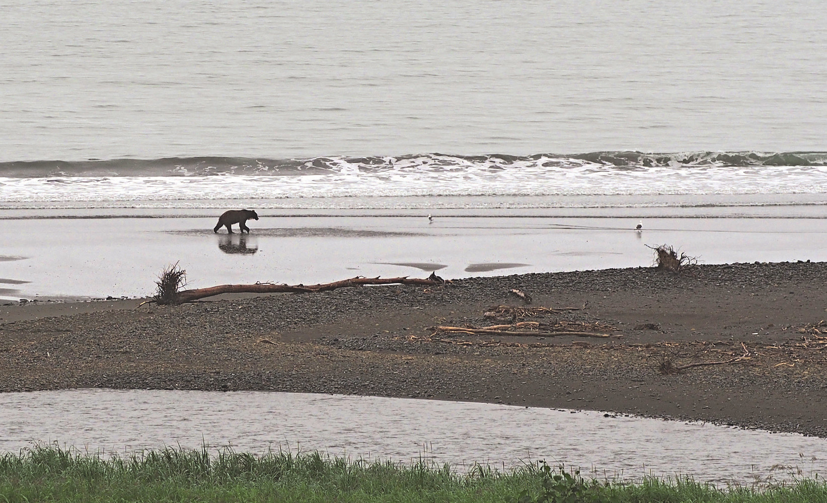 В этот день мы встретили многих обитателей океана. На поверхности воды неоднократно появлялись плавники косаток. Мы пытались к ним приблизиться, но «киты-убийцы» предпочитали уходить от непонятных рычащих аппаратов. Когда подходили к лежбищам сивучей, чувствовали взаимный интерес: мы разглядывали их, они – нас. Видели множество птиц – чаек, бакланов, топорков. Последние отличаются тем, что не могут резко взлететь с воды. Сперва они набирают начальную скорость, скользя по поверхности и загребая воду крыльями. Не раз приходилось объезжать несущегося наперерез топорка: бестолковая птица, удирая от одного гидроцикла, не замечала следующие. На берегу несколько раз видели медведей. Сразу же неслись к ним и фотографировали. Тогда мы еще наивно думали, что такая встреча – везение... Заночевали в устье реки Жупанова. Здесь находится небольшой рыбзавод, и нам выделили пустые домики при нем для ночлега.