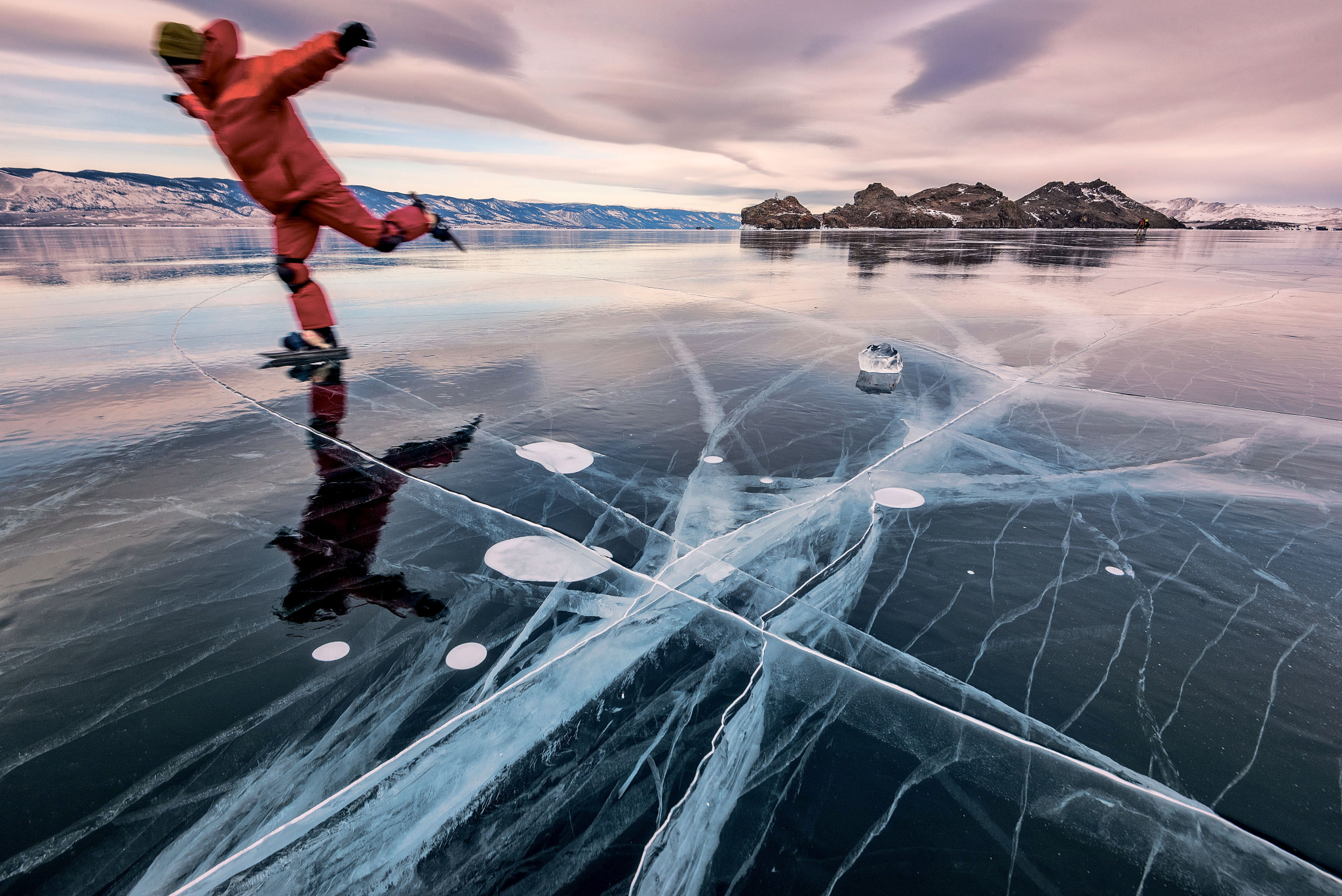 Красота зимнего Байкала особая: огромные снежные просторы из рассказов Джека Лондона, удивительные ледяные образования, которые выглядят то как нагромождение бесформенных плит, как будто бы специально завезенных сюда грузовиками, то как ледяное царство Снежной королевы с зубастыми занавесами. А еще ледяные пещеры на островах Байкала и много-много слепящего солнца, которое к вечеру опускается и дарит невероятной красоты малиновые закаты.