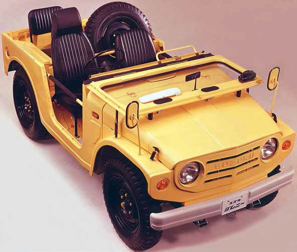 В 1965 году некая Hope Motor Company построила компактный внедорожник HopeStar ON 360 с подключаемым передним мостом, длиной менее трёх метров и весом 525 кг. Машина приводилась в движение двухтактным мотором воздушного охлаждения фирмы Mitsubishi. При рабочем объёме 359 см3 он развивал мощность 21 л.с. и скорость 70 км/ч. Серийным новый мини-вездеход стал только в 1967-м, но за год удалось продать не более 15 штук. Разочаровавшись в выбранном пути, Hope Motor Company отказалась от автомобильного производства, передав права на него компании Suzuki. И в 1970 году, после серьёзных переделок, бывший HopeStar появляется под именем Suzuki LJ 10 или Jimny 360. Его дизайн полностью изменился, а вот габариты остались почти прежними: длина – 3 м, ширина – 1,3 м, да и вес увеличился незначительно – до 590 кг. Конструктивно новый Jimny был вполне адекватен времени: открытый кузов с откидным задним бортом крепился к раме, подвеска – зависимая на рессорах, дверцы – тканевые на молнии, которые чуть позже заменили на более удобные с трубчатым каркасом и обычными ручками. А чтобы уложиться, прежде всего по длине, в японский рыночный сегмент kei car с самым низким налогом, запасное колесо разместили в салоне, отобрав место у задних пассажиров. Мощность двухцилиндрового двухтактного двигателя воздушного охлаждения всё того же объёма 359 см3, подросла до 25 л.с., а скорость – до 72 км/ч. Коробка, естественно, механическая четырёхступенчатая.