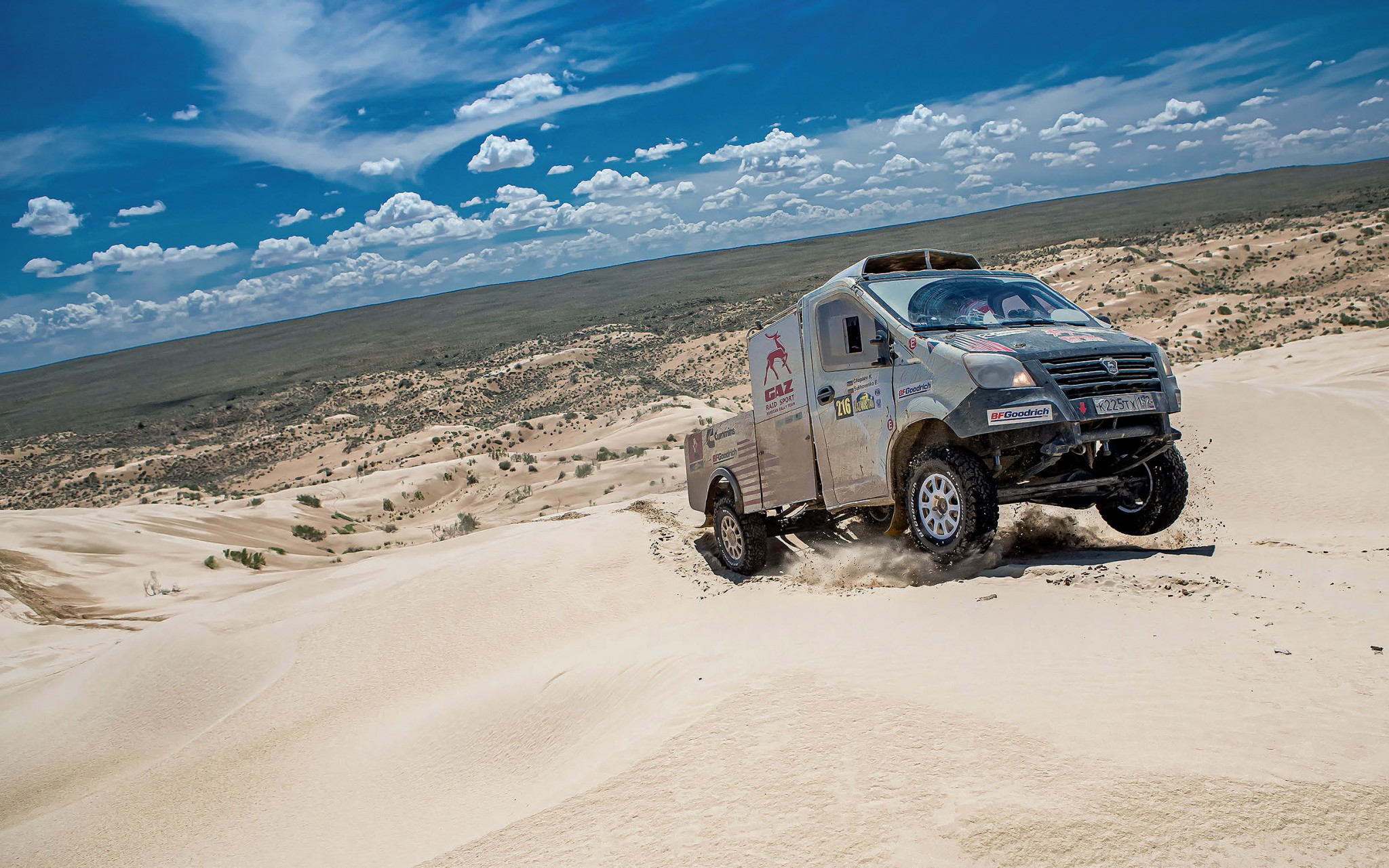 Вторым этапом стала астраханская гонка «Золото Кагана», которая обычно проходит в конце апреля. Спортсмены любят её, возможно, потому, что каждая кочка здесь давно выучена наизусть. К тому же в Астрахани в это время всегда тепло, комфортная мягкая погода, можно прогуляться в футболках, полакомиться воблой и прочими дарами Каспийского моря. Приятная атмосфера привлекает огромное количество участников, да и время выбрано весьма удачно: с «Дакара» все уже вернулись, а до других марафонов ещё далеко. Ничего лучшего для соревновательных тренировок и не придумать. В этом году собралось рекордное количество экипажей — более 50 по всем классам. После песков Africa Eco Race пилоты гоночных «Газелей Next» легко форсировали астраханскую степь и песочницу, но ходов рессорной подвески не
