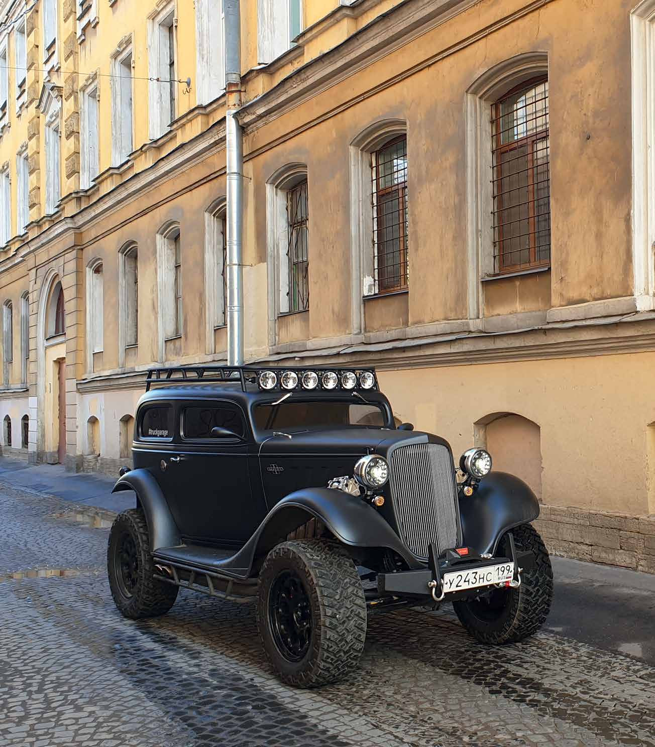 Узнаваемый образ довоенной советской «эмки» ГАЗ М-1, стиль американских хот-родов и внедорожник на больших колёсах. Возможно ли совместить всё это в одном автомобиле? Практика показывает, что при вдумчивом подходе с такой задачей вполне можно справиться. И питерское тюнинг-ателье Truck Garage подтвердило это своим проектом Hyperion.