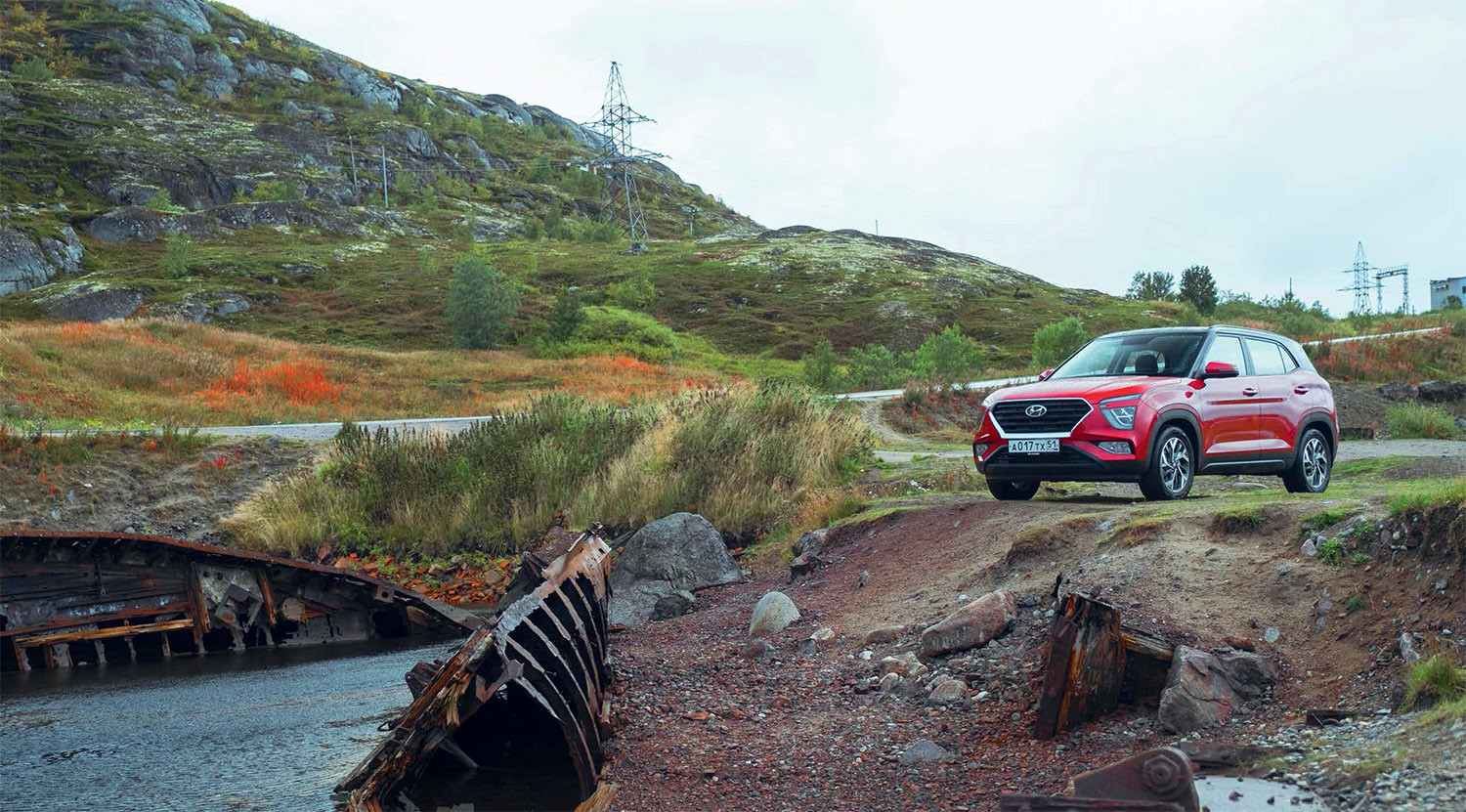 На сегодняшний день, оформление оптики новой «Креты» видели уже все, поэтому наши оценки мы лучше оставим при себе. Но есть любопытные наблюдения, которые удалось получить при непосредственном знакомстве. Ради этого мы отправились в Териберку — край суровой природы и таких же суровых людей. Так вот, за два дня общения с новой «умной» Creta, я пришёл к неожиданному выводу: кроссовер весьма фотогеничен. Конечно, помогла погода: небо, затянутое облаками, давало исключительно ровный рассеянный свет, а арктическая природа служила отличным естественным фоном. Но даже если не обращать внимание на странные светодиодные росчерки спереди и сзади, форма кузова автомобиля выглядит весьма сбалансированной и, не побоюсь этого слова, академической.