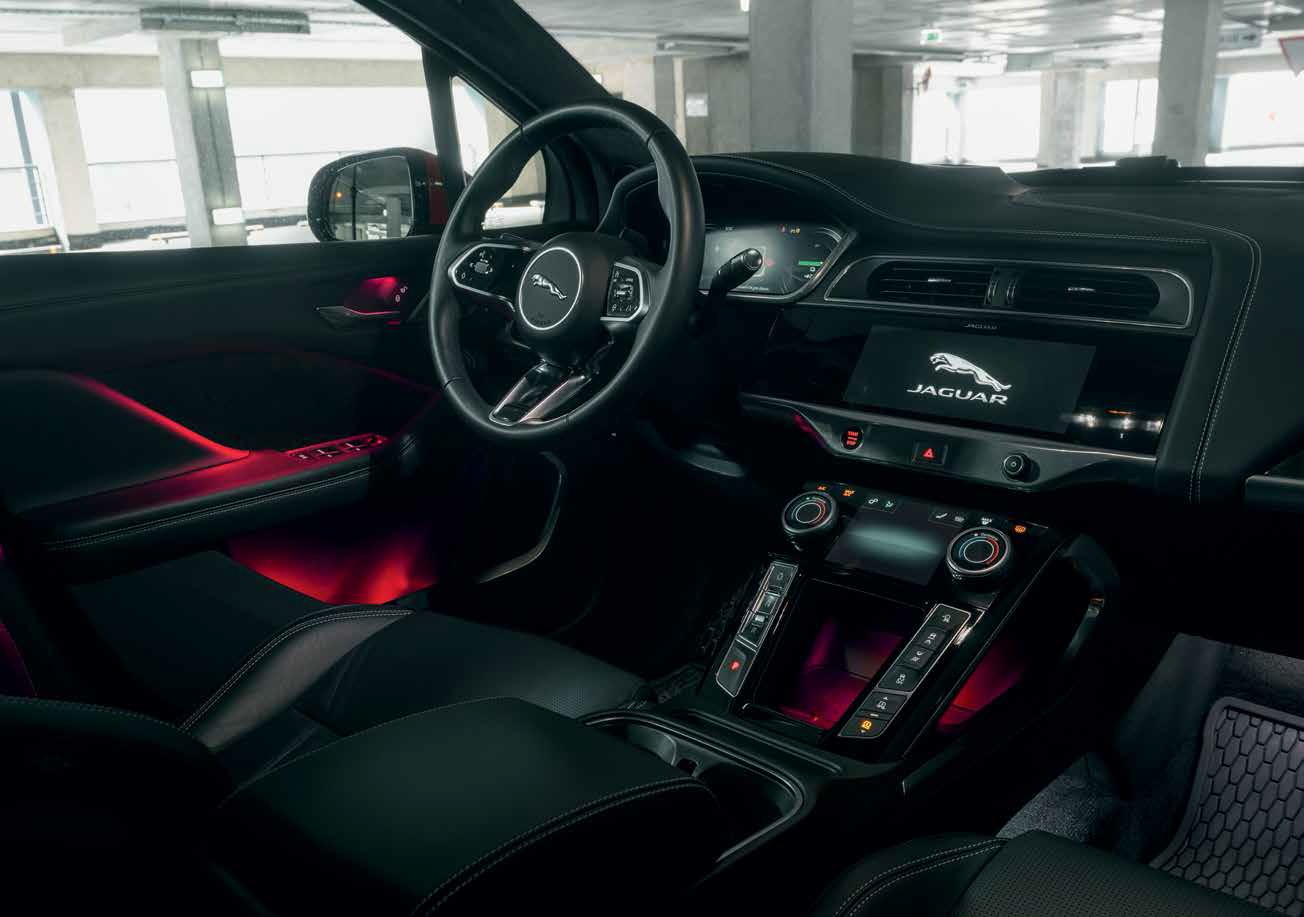 Так вот, Jaguar I-PACE, хотите вы этого или нет, – кроссовер. К тому же полностью электрический, что делает его абсолютно уникальным на нашем рынке. Он красивый и странный, привлекающий внимание и пугающий. Почему пугающий? Хотя бы потому что измученный ламповыми телевизорами мозг не сразу примиряется с тем, что звук двигателя здесь синтезированный, а вместо бензоколонки нужно искать розетку. Он бесшумно трогается, молниеносно ускоряется, при этом внутри тихо, как в салонах официальных дилеров в нынешнем мае. Дверная ручка учтиво выезжает из двери, вызывая бурю восторгов у туземного населения и скепсис у тех, кто ещё помнит холодные зимы. Интерьер пусть и небольшой, но всё-таки цитатник из других моделей компании, в частности Range Rover Velar, а значит, все манипуляции с автомобилем происходят через сенсорные панели. Уже потом, когда вспотевшие ладони будут искать в меню пункт включения городского режима, мы не раз добрым словом вспомним привычные физические кнопки.