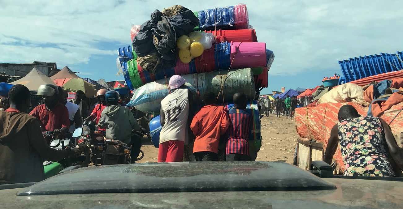 Надо сказать, что погружаться на дно Африки мы начали прямо на границе – более дикого погранперехода я не видел ни в одной стране мира. Конголезская часть не заасфальтирована, поэтому все ездят и ходят по раскисшей от дождей глине, попутно разбрасывая вокруг невероятное количество мусора. Около половины транспорта, проходящего через КПП, приводится в движение мускульной силой. Как правило, это большие телеги, заваленные ширпотребом, которые толкают 5–6 человек. Разумеется, никакой стороны движения они не придерживаются, а едут там, где есть просвет, что приводит к тотальному хаосу. К счастью, на моей машине стоят передние и задние отбойники и в случае необходимости можно кого-нибудь подвинуть или, наоборот, принять удар. В окна постоянно заглядывают недовольные лица. А уж если кто-то видит, что мы снимаем происходящее на телефон, то раздаются крики, угрозы, а иногда начинается погоня. В общем, обстановка напряжённая. Пограничники, улыбаясь, расспрашивают, как нас сюда занесло и куда мы едем. Европейцы здесь бывают нечасто, поэтому наше появление вызывает живые эмоции.