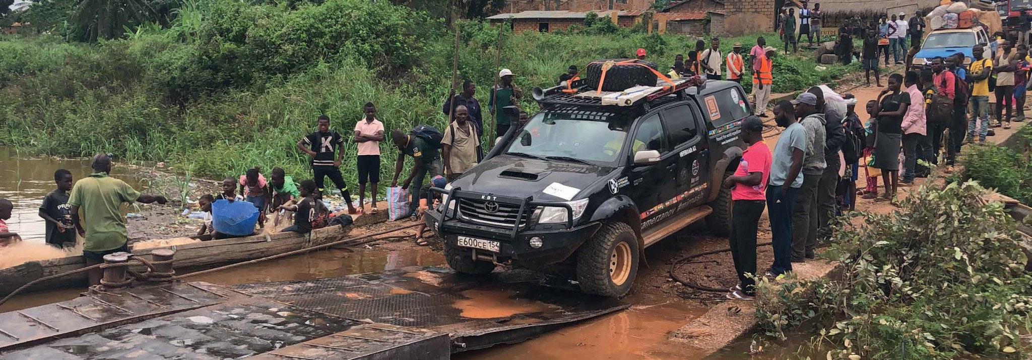 Вскоре мы выезжаем на асфальтированную дорогу, и это большая неожиданность. Хотя у её появления есть вполне логичное объяснение – это национальное шоссе № 1, ведущее до Лубумбаши и дальше до границы с Замбией. Впрочем, нам почти сразу приходится свернуть на глиняный просёлок R111 в сторону переправы. На протяжении всего пути мы рассматриваем встречный транспорт – более ушатанных машин никто из нас не встречал. У большей части из них нарушена геометрия кузова, помяты крыши, не закрываются капоты и багажники, подвязаны скотчем и верёвками бамперы, зеркала, крылья… Машины категорически перегружены тюками и людьми. С интересом мы считаем остановившихся из-за поломок. В среднем получается около десяти в час. Видно, что некоторые стоят тут долго – у кого-то отвалилось колесо, у кого-то привод, несколько человек ковыряются в двигателях...