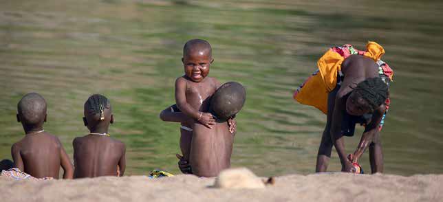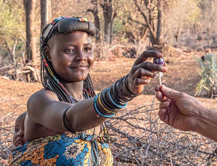 На дороге всё чаще появляются люди из племени химба. Одеты они в свои привычные одежды: женщины топлес, в бусах и юбках, а дети просто в набедренных повязках. Ах, какое это приятное зрелище после Эфиопии! Там наша поездка к якобы диким племенам мурси превратилась в сплошной фарс. Каждый «дикарь» понимал, что белому человеку нужно, поэтому все вокруг кричали: «Фото – файв бырр, видео – тэн бырр…» Бырр – это эфиопские деньги. В общем, ребята неплохо преуспели в коммерции.