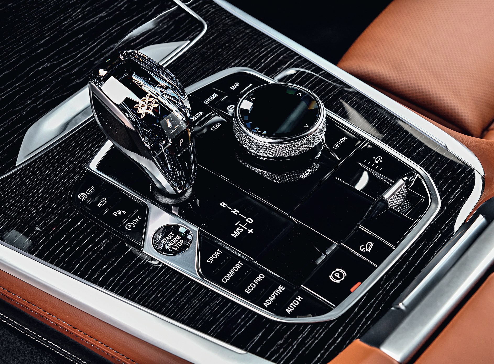 Родство с X5 нашло своё отражение и в интерьере, по крайней мере до центральной стойки. Если вам завязать глаза и пересадить из Х5 в X7, то разницы вы не заметите. Ну разве что оснащение побогаче. Сиденья, отделанные кожей Vernasca, четырёхзонный климат-контроль, электропривод передних сидений и панорамная крыша — всё это есть уже в базовой комплектации. Ушли в прошлое классические стрелочные приборы. Дизайн виртуальной приборной шкалы с бегущими навстречу друг другу нарисованными стрелками безальтернативен, хотя логично было бы добавить несколько вариантов на выбор для тех, кому базовый не понравится, а таких будет немало. Салон велик, и все обязательные три ряда сидений оснащены электроприводами. Вообще, по части трансформации салона X7 — скорее семьянин, нежели автомобиль для пассажиров второго ряда. Потому что в Америке за рулём кроссовера окажутся преимущественно представительницы прекрасного пола, а пассажирами будут дети. Кнопки, расположенные в багажнике, легко превращают огромный Х7 либо в пассажирский микроавтобус, либо в грузовой универсал — все сиденья в семиместной версии складываются и раскладываются автоматически. При этом на складывание уходит примерно 26 секунд, а на раскладывание — около 30. Третий ряд образует абсолютно ровный пол,