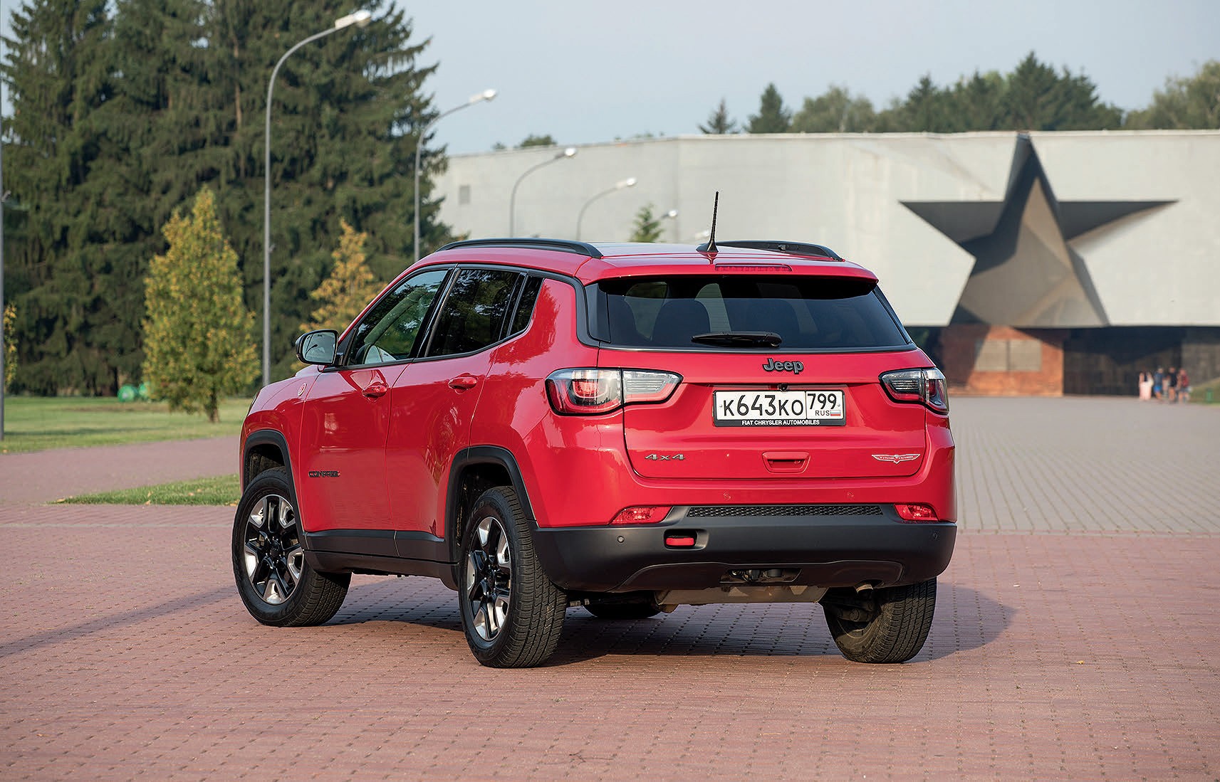 Как бы там ни было, но после всех трансформаций обновлённый Compass выглядит эдаким итальянским модником, с кучей заимствованных у соседей идей. Так, например, шайбу Terrain Responce… Ой, простите, оговорился, Jeep Selec-Terrain, подсмотрели понятно у кого. Так же, как и внедорожный круиз-контроль Crawl Control… Ой, извините, хотел сказать Selec-Speed Control. Нельзя сказать, что это недостаток. Сегодня все кроссоверы так или иначе похожи друг на друга. Да и не только кроссоверы. При этом у Jeep хватает и личных достижений, которыми он вполне может гордиться. Это, правда, касается только версии Compass Trailhawk. У неё стальные листы защиты днища, крюк фаркопа и передние буксировочные крюки, окрашенные в красный цвет… Но главное в другом. Угол въезда 30 градусов, угол съезда 33,6 градуса и угол преодолеваемой рампы 24,4 градуса. Дорожный просвет 216 мм. Это очень круто и не только из-за цифр. Фишка в том, что Compass Trailhawk имеет шильдик Trail Rated, то есть на нём можно пройти трассу Рубикон (Rubicon Trail) — один из