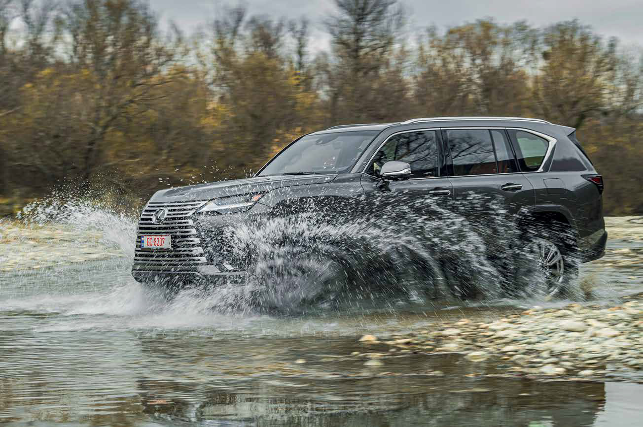 Говорят, будто японцам пришлось сделать экологический реверанс и под капотом LX больше не будет устаревших восьмицилиндровых моторов. Но, во-первых, это нужно было сделать давным-давно, а во-вторых, литраж новых двигателей всё равно впечатляет: объём шестицилиндрового V-образного турбодизеля – 3.3 литра. Он выдаёт 299 л. с. и развивает внушительные 700 Нм тяги. При этом, крутящий момент бензинового 3.5-литрового V6 битурбо на 415 сил – 650 Нм. Он значительно мощнее древнего 5.7-литрового атмосферника V8, который долгие годы ставили на «пятьсот семидесятый» LX. Выходные данные новых моторов могут показаться вам знакомыми и это немудрено, ведь двигателями, с флагманом премиальной линейки, поделился новый Land Cruiser. Как, собственно, и десятиступенчатой АКП Aisin, и всей остальной трансмиссией. А вот Lexus ничего взамен ему не дал и «трёхсотый» продолжает страдать без гидропневматической подвески. Вы спросите, почему страдать? Да потому что однажды попробовав гидропневму, вы уже не захотите возвращаться даже к великолепно настроенной системе противодействия кренам Toyota LC 300 в версии GR-Sport. Такого азарта на виражах не ждёшь от трёхтонного рамного мастодонта. В режиме Sport S+ Lexus плавно и прогнозируемо сползает наружу и почти без кренов выходит под тягой из поворота, от которого при одном воспоминании о «Крузере» с обычной подвеской, оторопь берёт. К тому же здесь стоит чистый электроусилитель, поэтому руль у LX лёгкий, но, увы, не только на парковке – обратной связи маловато и в динамике. Однако, во-первых, она всё-таки есть, если конечно вы не оторваны от реальности и понимаете, что происходит с автомобилем, а во-вторых, ну кто, в самом деле, рассчитывает на спортивное поведение рамника. Хотя зажечь на асфальте новый LX вполне позволяет, и если вы хотите в этом убедиться, то ваш выбор – бензин. Он подхватывает почти мгновенно, и не только со старта, но и с хороших крейсерских скоростей. Причём, ускорение в любом случае ровное, без рывков. Если не знать, никогда и не скажешь, что под капотом две турбины. На тормоза с электронной системой, которая с помощью датчика на педали рассчитывает тормозное