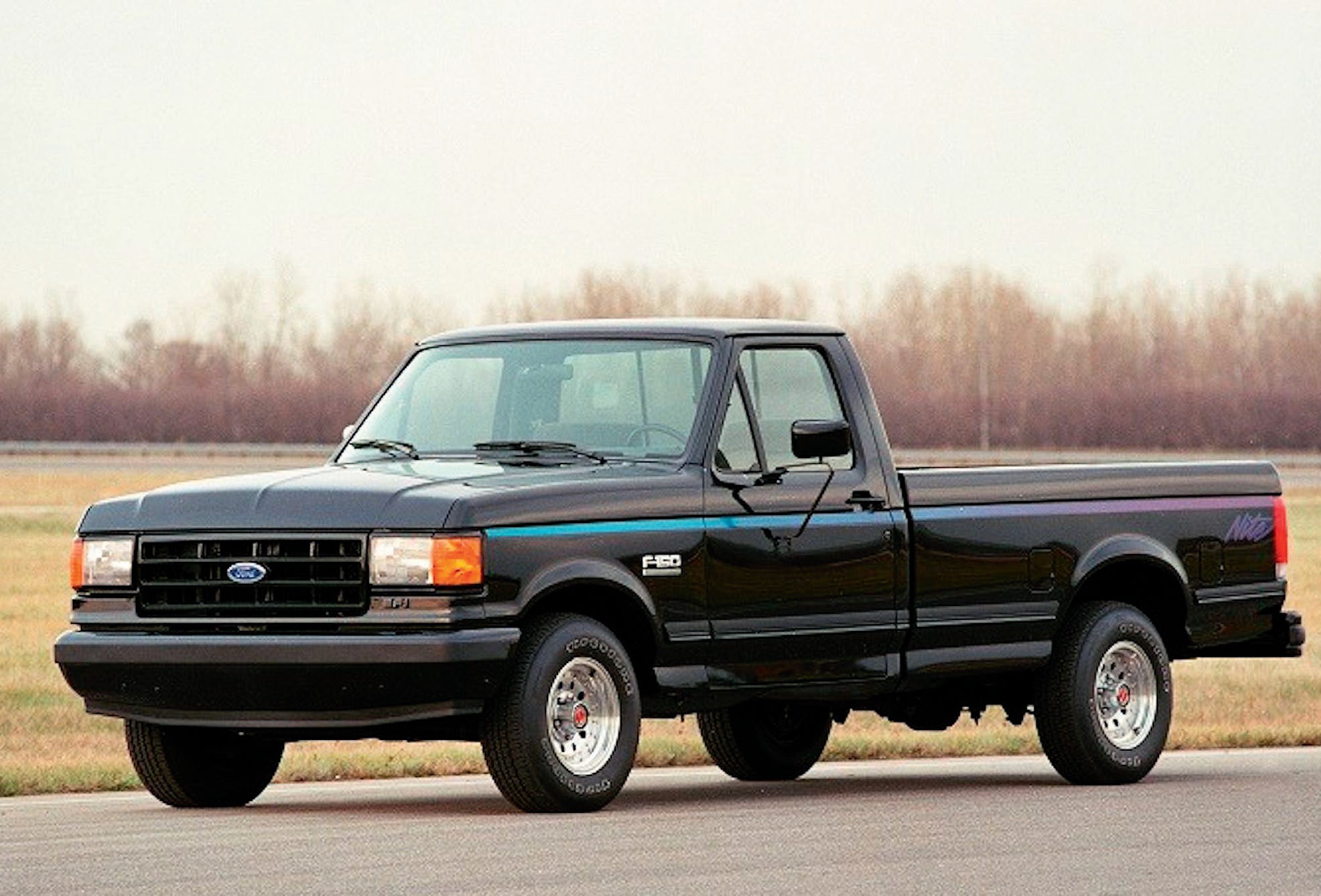 Пробой пера стал прототип Ford F-150 Street с большой восьмёркой рабочим объёмом 7.5 л и мощностью 230 л. с. Акцент был сделан на дизайн. Крышу подрезали на 9 см, установили большие 16-дюймовые колёсные диски, поставили электромагнитные дверные замки без ручек и закрыли фары щитками, как у гоночных автомобилей. А в 1991 году была выпущена лимитированная серия F-150 Nite (именно в таком написании). Она отличалась чёрной (воронёной, как писали в рекламных проспектах) окраской кузова с фиолетовой полосой, особыми алюминиевыми дисками и спортивной подвеской. Кроме того, кнопочное управление раздаточной коробкой Touch Drive (предлагалось с 1989 года) шло в базе. При этом покупатель мог выбрать только из двух V8 с электронным впрыском: рабочим объёмом 5.0 л мощностью 185 л. с. или 5.8 л мощностью 210 л. с. В 1992-м «ночной» пикап выпускался уже на базе обновлённой F-серии. Про количество экземпляров, сошедших с конвейера, ничего неизвестно, но американцы считают Nite большой редкостью.