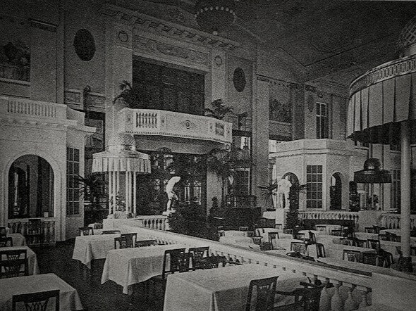И сразу успех неслыханный. Дворянство так и хлынуло в новый французский ресторан, где, кроме общих зал и кабинетов, был белый колонный зал, в котором можно было заказывать такие же обеды, какие делал Оливье в особняках у вельмож. На эти обеды также выписывались деликатесы из-за границы и лучшие вина с удостоверением, что этот коньяк из подвалов дворца Людовика XVI и с надписью «Трианон». Владимир Гиляровский, «Москва и москвичи»