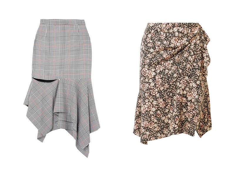 Юбка асимметричного кроя – одна из самых практичных и комплементарных вещей, которая вошла в моду задолго до презентации новых коллекций на 2018 год. Весной ее можно носить с лаконичными свитерами, а летом дополнять простыми блузами и футболками. Что касается принтов, то цветочные мотивы и клетка все так же