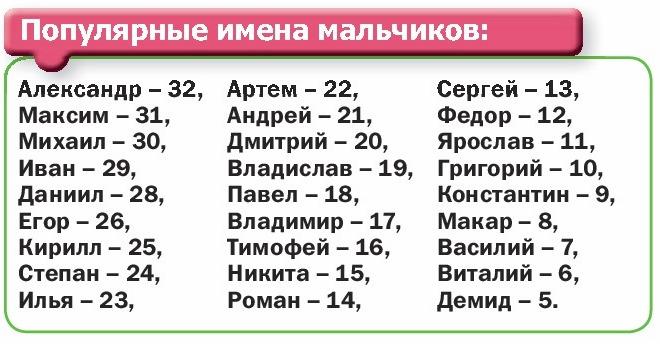 Имена: рейтинг популярности