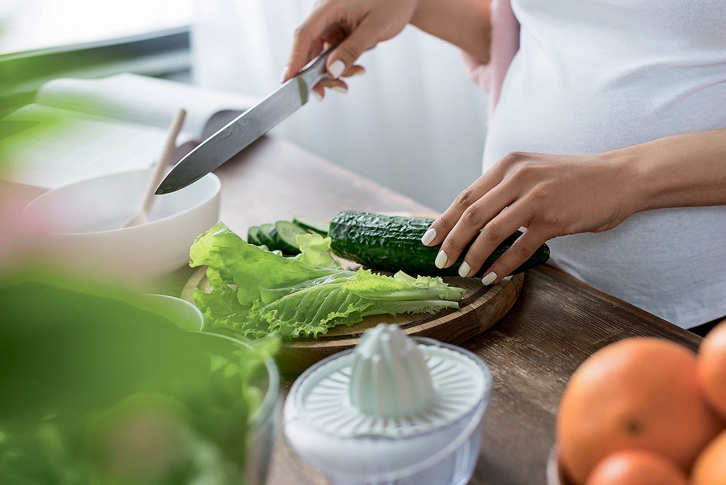 С 32-й недели беременности (8–9 месяцев), когда физическая активность будущей мамы снижается и она больше отдыхает, а работающая беременная уходит в дородовой отпуск, калорийность пищи целесообразно уменьшить на 5–10 % (за счет жиров и легкоусваиваемых углеводов, но не белка).