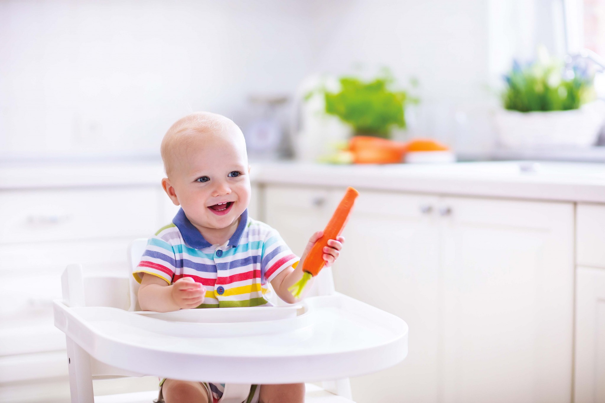 Как правило, о покупке стульчика родители задумываются, когда малышу исполняется 6 месяцев. Он уже начинает сидеть, и в его рацион вводится прикорм. И кормить кроху удобнее, конечно, сидя. Кроме того, иногда у мамы есть дела на кухне, и лучше, когда ребенок остается в поле зрения и в безопасности