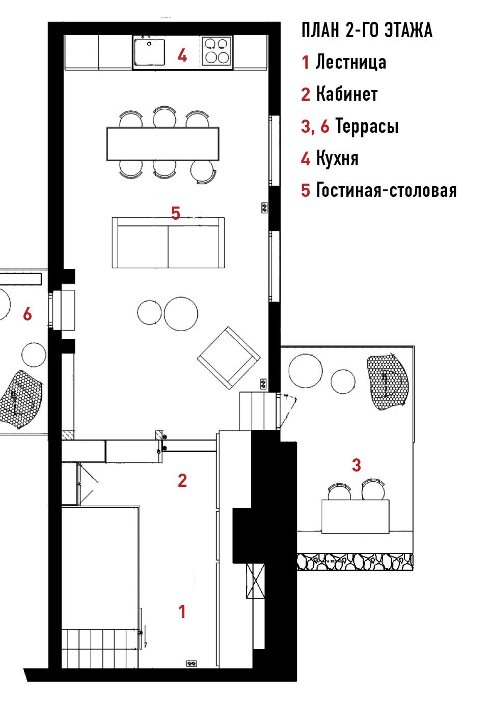 Леони Масон пол­но­стью пе­ре­кро­и­ла квар­ти­ру, чтобы впу­стить в нее есте­ствен­ный свет и сде­лать зри­тель­но про­стор­ней. Архитек­тор снес­ла меж­ком­нат­ные пе­ре­го­род­ки и убра­ла по­чти все две­ри: при­хо­жая пе­ре­те­ка­ет в го­сти­ную, а необыч­ный асим­мет­рич­ный про­ем, ве­ду­щий в спаль­ню, за­кры­ва­ет­ся лишь ши­ро­ким за­на­ве­сом. На вто­ром эта­же по­явил­ся неболь­шой ка­бинет — фак­ти­че­ски он на­хо­дит­ся в лест­нич­ном хол­ле, а осталь­ной мет­раж от­дан под объ­еди­нен­ную кух­ню-сто­ло­вую-го­сти­ную, где в роли един­ствен­но­го раз­гра­ни­чи­те­ля про­стран­ства вы­сту­па­ет ди­ван Ottoman по ди­зай­ну Ноэ Дюшофур-Лоран­са для Cinna. Там, где при­ват­ность все-таки необ­хо­ди­ма (преж­де все­го в сан­тех­ни­че­ской зоне), Масон за­ме­ни­ла рас­паш­ные две­ри на раз­движ­ные, ко­то­рые по­мо­га­ют
