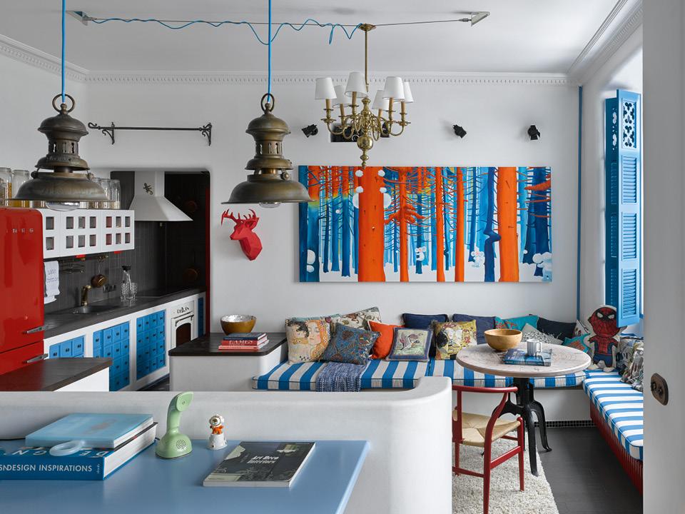 Ремонт в своей квартире Елена и Кирилл Чебурашкины делали больше двух лет, и в какой‑то момент на двери появилась записка от соседа: “Сколько можно долбить? За это время можно в пещере выдолбить квартиру!” Как ни странно, автор послания был недалек от истины — в жилище семьи с тремя детьми почти нет отдельно стоящей мебели, и легко представить, что этот “цельнокроеный” интерьер действительно выдолблен из камня.
