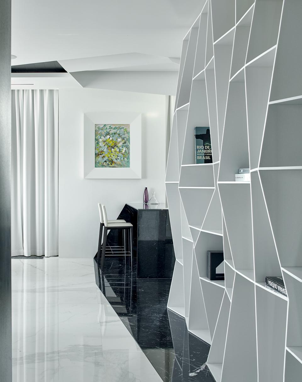 Дом на Мосфильмовской — идеальная обертка для геометричных интерьеров мастерской za bor. Архитекторы воспользовались ситуацией с максимальным эффектом.