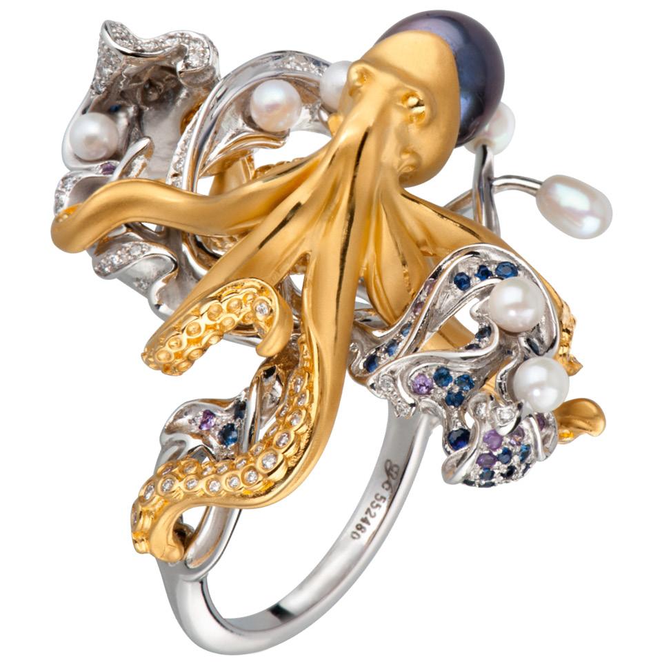 Испанская марка Carrera y Carrera выпустила новую коллекцию Océanos, вдохновленную темой океана. В ней представлены морские коньки, звезды и осьминог (на фото) из белого и желтого золота с аметистами, сапфирами и жемчугом.