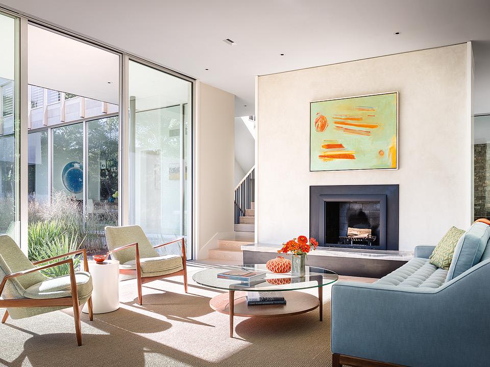 Если в комнате есть камин, в ней будет ощущение традиционности, даже если сам по себе интерьер — современный, как в этом проекте Leroy Street Studio Architects. Кстати, очаг в этой гостиной не только служит центром притяжения, но и помогает зонировать пространство.