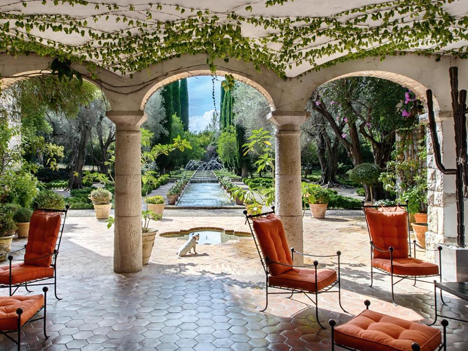 Поместье вблизи гольф-курорта построено по проекту архитектора Андре Свечина. В доме девять спален, кабинет-библиотека и несколько открытых и закрытых террас. Снаружи — парк с оливковой рощей, бассейн, сад, пруд и фонтаны. Цена по запросу.