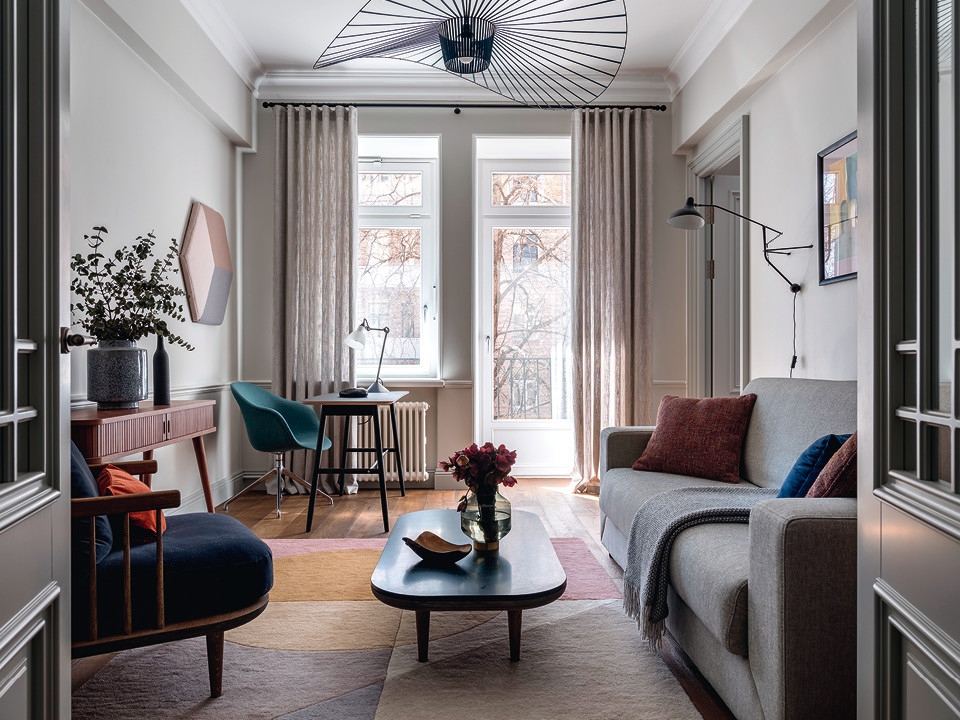 Дизайнер Мия Карлова оформила квартиру в стиле кинфолк, но на московский лад