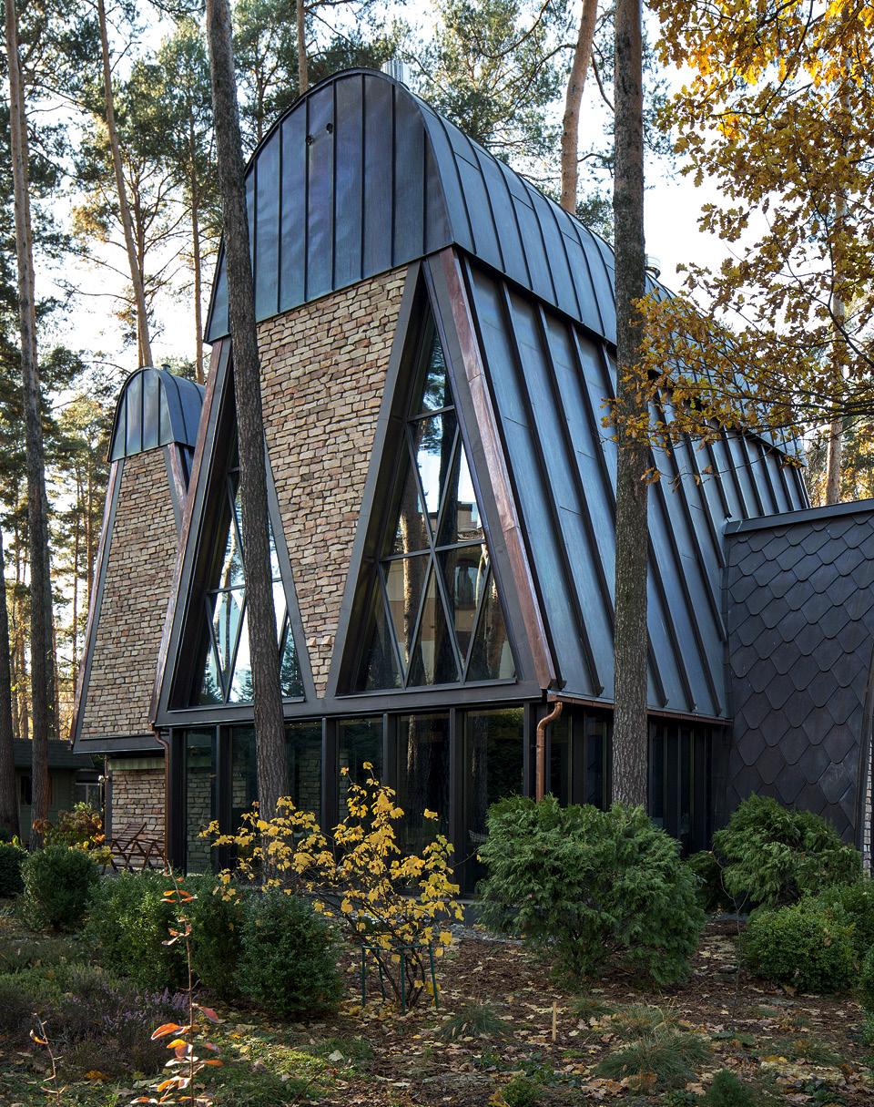 Этот дом стал своеобразным мотиватором для его хозяина, который мечтал построить помещение, где ему бы захотелось собирать гостей и жарить мясо. Архитекторы из бюро Manipulazione Internazionale в лице Алексея Клинских, Олега Поддубного, Михаила Скворцова и Олега Жукова решили в вопросе проектирования отталкиваться от ландшафта — на участке росло много сосен, и хотелось сохранить как можно больше деревьев. В результате придумали вот такое немного вытянутое по высоте здание. Основание его не сплошное, а стоит на балках, таким образом удалось дать простор корням сосен, которые растут, как известно, вширь, ближе к поверхности, а не вглубь.