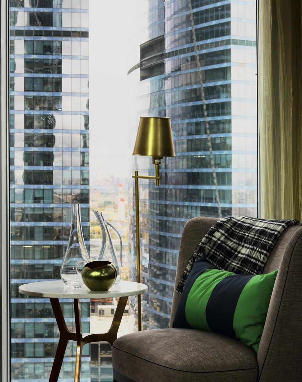 Взглянув мельком на эти фотографии, можно предположить, что квартира находится не в Москве, а где‑нибудь в Нью‑Йорке. С Манхэттеном, на мой взгляд, ее роднят панорамные окна и виды на соседние стеклянные высотки. Как оказалось, такая ассоциация возникает неспроста: “Хозяин квартиры жил в Штатах, и ему действительно хотелось получить “манхэттенский вид”, — подтверждает декоратор Марина Брагинская, которая занималась оформлением интерьеров. — Ему нравятся Америка, американский стиль жизни и мебель”.