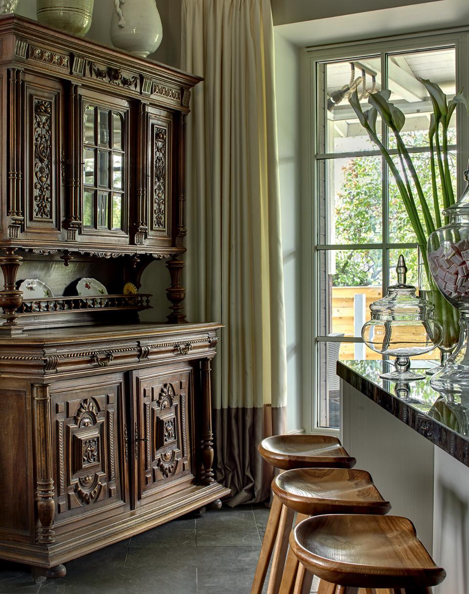 В плане дом представляет собой девятиугольник, и дизайнеры, работавшие на проекте до Чабровой, не совладали с таким сложным пространством. Хозяин понял, что дело зашло в тупик, когда выяснилось, что в комнате младших детей не получается поставить кровати — настолько там все было вкривь и вкось. Елена вспоминает первое впечатление от дома: “В нем не было ни одной комнаты правильной формы!” Вскоре к проекту подключилась Инна Зольтманн, однокашница Чабровой по школе “Детали”, которая выступила в роли архитектора. Придуманная ею планировка напоминает пазл, где у каждой перегородки и у каждой вещи — свое, единственно возможное место. Инна “подвинула” межкомнатные стенки, чтобы придать комнатам максимально правильную форму, сделала на первом этаже четкую круговую