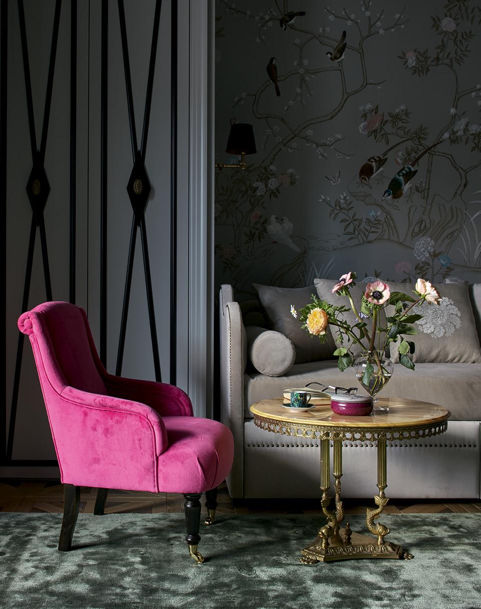 Девочек, одной из которых восемь лет, другой — четырнадцать, пришлось поселить вместе, правда, им отдали самую большую комнату — двадцать шесть квадратных метров. При этом сестры совершенно разные и внешне, и по характеру. И у каждой — свои представления о том, каким должен быть интерьер. Катерина, выслушав обе стороны, нашла компромисс: спальную и рабочую зоны обеих разнесла максимально далеко друг от друга, оформив их по‑разному, но в едином стиле. У младшей над кроватью висит голубой балдахин, у старшей стена расписана цветами и птицами в духе обоев de Gournay. В результате обе остались очень довольны и даже не прочь теперь поменяться.