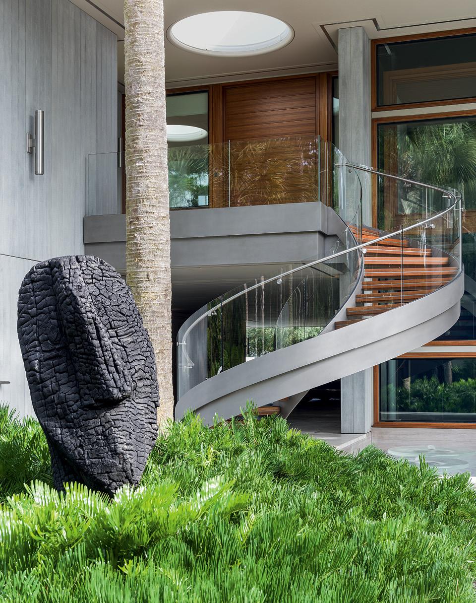 С хозяевами этой виллы на острове Хилтон-Хед дизайнер Александра де Гаридель-Торон работает не в первый раз: она уже оформила для чешского банкира, его жены и четверых малышей дома в Чехии, Швейцарии и Кейптауне. Новому проекту в Южной Каролине, однако, суждено было стать у хозяев самым любимым. “Местность здесь неимоверная — богатейшая флора и фауна”, — говорит дизайнер. Вдобавок к роскошной природе и расположение дома площадью в тысячу метров очень удачное — прямо на берегу океана. Само здание построил местный архитектор Мэтью Тейлор, и предложенная им схема интерьера предполагала использование двух основных материалов: тика и белого кориана. Были и кое-какие странные идеи по декорированию — вроде огромного черного мраморного камина со встроенным телевизором в гостиной. “Клиенты попросили спроектировать им вместо этого “что‑то человеческое”, и мне пришлось буквально перелопатить всё здание, — рассказывает Александра. — В конце концов, это же приморская дача, тут предполагается бегать босиком и в купальнике”. Одной из проблем были физические размеры помещений — одна только спальня занимает сто метров! “Многие предметы мебели пришлось перепропорционировать, чтобы они выглядели уместно”. Так, например, барные стулья по дизайну Роберта Бристоу на кухне в два раза больше фабричной модели — их делали на заказ.