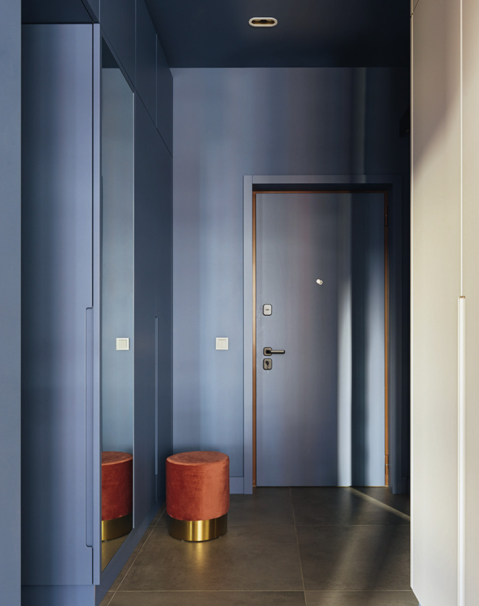 “Я видела предыдущую квартиру заказчицы, она была более традиционная, — рассказывает Елизавета Голубцова из архитектурного бюро BIGO. — Видимо, ей захотелось чего-то нового, неожиданного, может быть, даже для нее самой. Она была готова к экспериментам и с удовольствием обсуждала все наши предложения”. Квартира в новеньком жилом комплексе на Шелепихе, с прекрасным видом на Шелепихинскую набережную и Москву-реку, как нельзя лучше подходила для экспериментов с пространством и цветом.