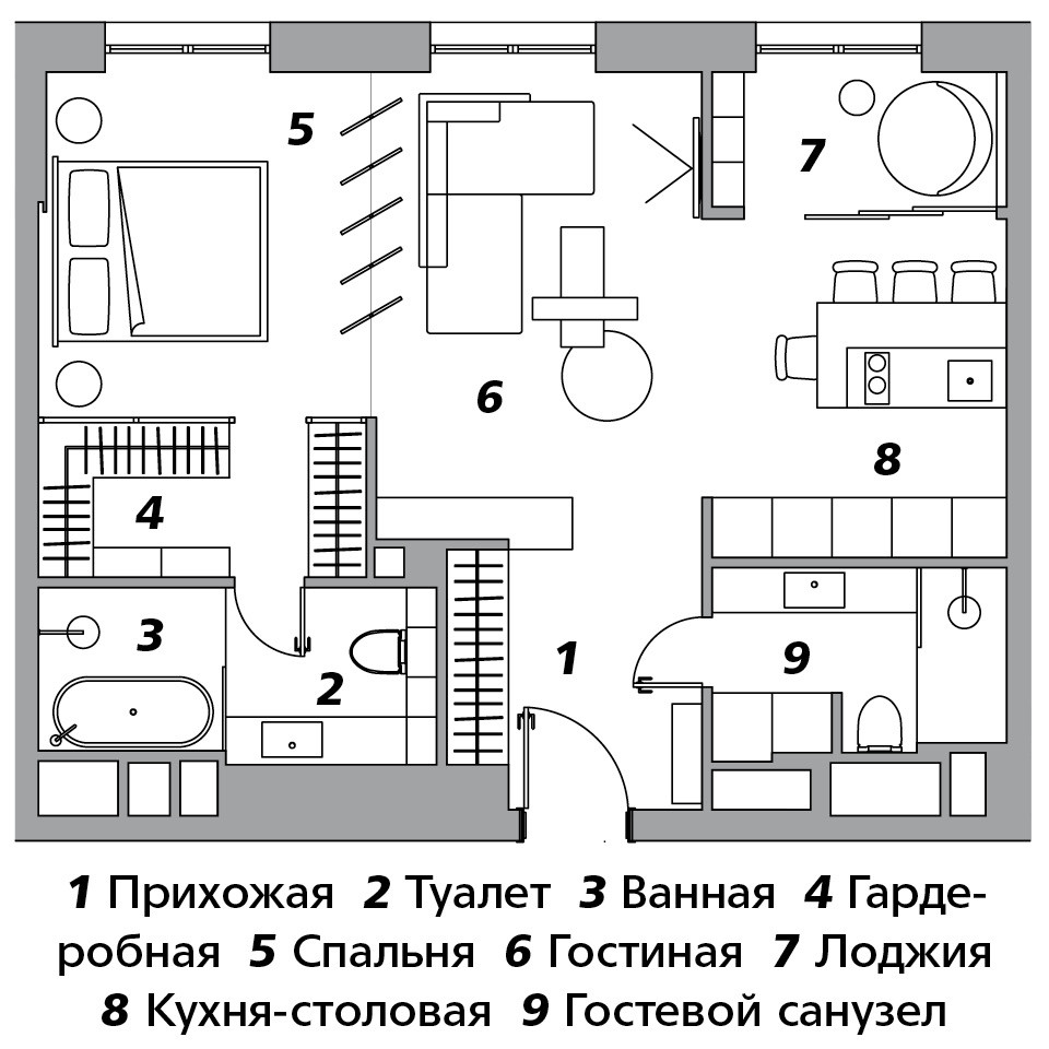 Команда архбюро “Ригель и балка” спроектировала эту квартиру для молодой пары, “упаковав” в небольшую площадь хозяйский сюит, гостиную, кухню-столовую, гостевой санузел и “живой уголок”. Заказчики мыслили рационально: им не нужен был интерьер “на вырост” (в случае пополнения в семье они переедут в жилье попросторней), место для ночевки гостей или другие удобства “на всякий случай”. Апартаменты в “Пресня Сити” точно отвечают их сегодняшнему образу жизни.
