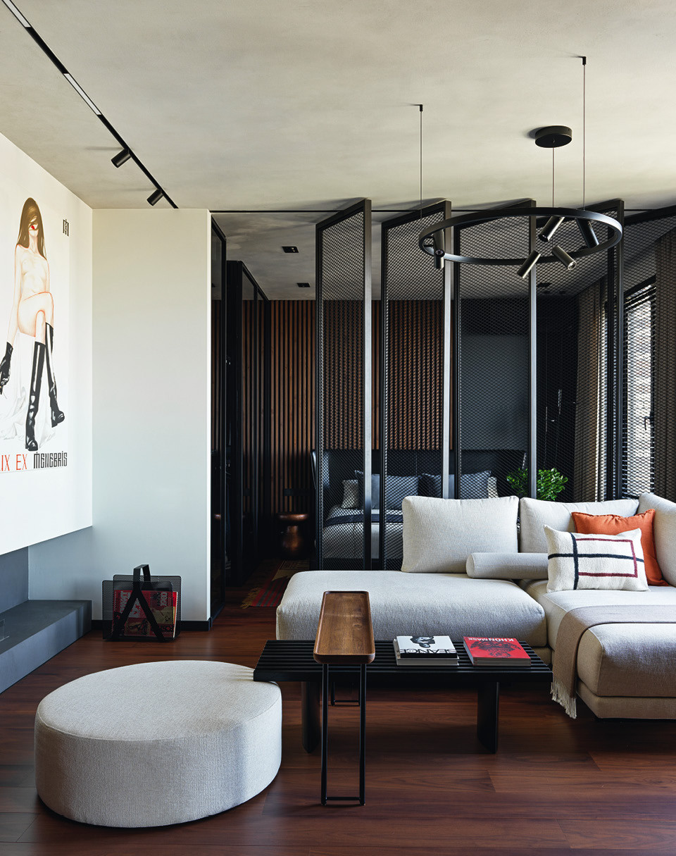 Чтобы не дробить пространство, архитекторы бюро “Ригель и балка” использовали перегородки из сетки.