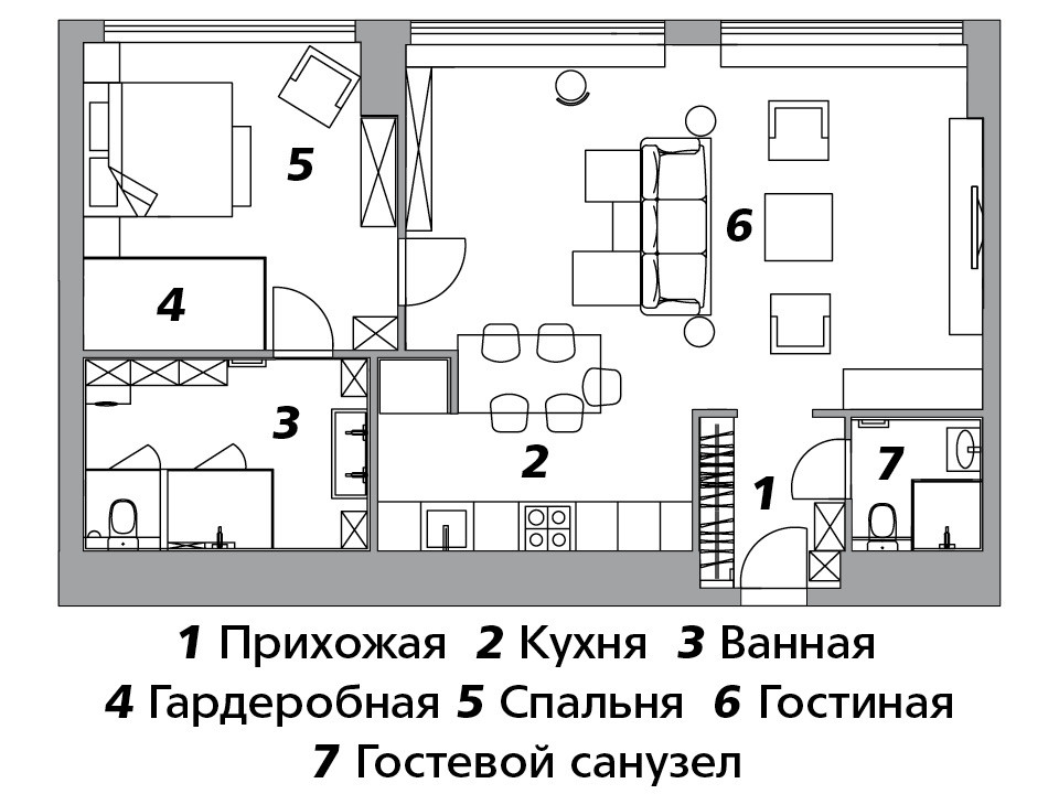 Екатерина Бегичева получила образование дирижера, поэтому о дизайне рассуждает с позиции музыканта: “Маленькое пространство боится “разноголосья”. Чтобы добиться звучания в унисон, важно единообразие как в материалах, так и в формах”. Эту квартиру она оформила для своего сына, вкусы и потребности которого знает досконально. Александр — профессиональный диджей, и хоть большую часть времени трудится в наушниках, иногда все же устраивает дома вечеринки, где ставит музыку, поэтому дизайнер позаботилась и о наличии просторной общей зоны, и о хорошей звукоизоляции.