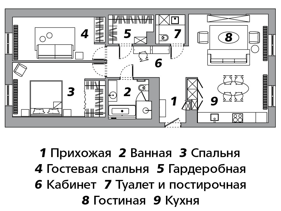 Анастасия Хальчицкая и ее муж Али Мамедов жили в квартире в старом фонде и подумывали приобрести жилье попросторней. “И тут мы увидели в продаже квартиры в доме по проекту Сергея Чобана, работы которого я очень люблю, — рассказывает дизайнер. — Мы выбрали квартиру на втором этаже, отсюда есть выход на общее патио во внутреннем дворе, и она на две стороны, поэтому у нас во всех комнатах много естественного света”. Супругам предстоял первый совместный ремонт, и Анастасия предложила мужу сделать “домашнее задание”: выбрать те интерьеры, которые ему нравятся. Оказалось, что оба предпочитают минимализм, и они вместе приступили к работе.