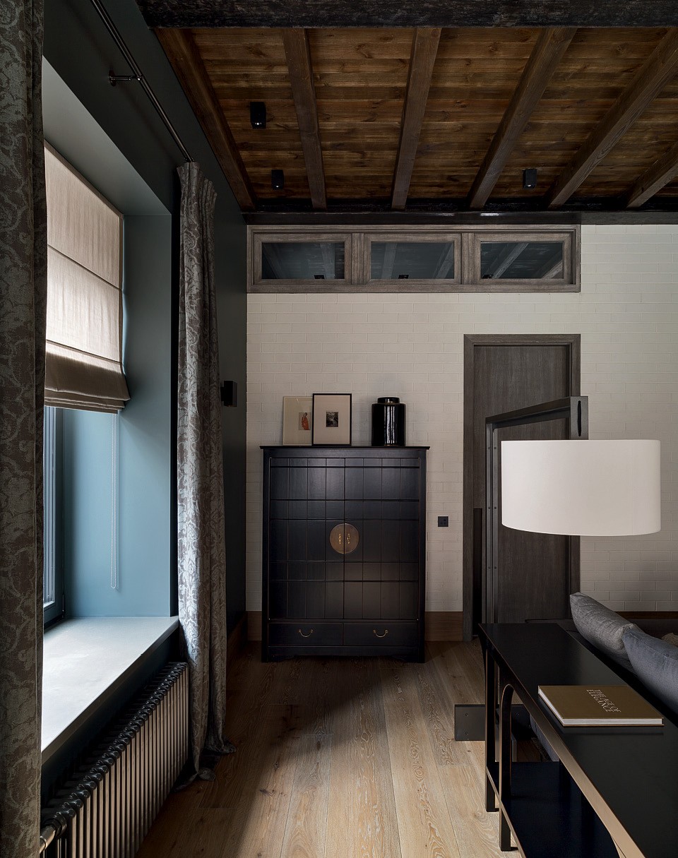 Как рассказывает Александр, заказчики хорошо знали, чего хотят. Например, они заранее решили отдать сыновьям-школьникам весь третий этаж — качественно его звукоизолировать, чтобы два поколения семьи могли проводить время в свое удовольствие, не мешая друг другу. Хозяин дома также настаивал на камине. “Это редкий случай, когда камин в доме действительно используется, — говорят авторы проекта. — Бывает, что хозяин возвращается с работы за полночь и идет рубить дрова, чтобы развести огонь”.