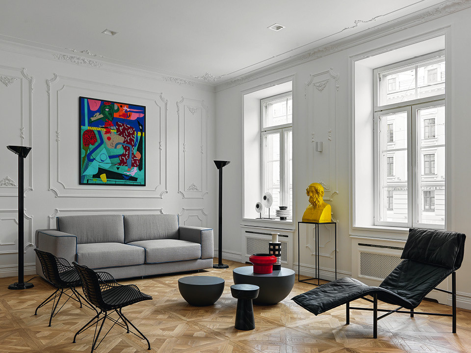 Дарья Майер любит использовать яркие цвета в своих интерьерах, но для этой квартиры выбрала монохром — ради искусства.