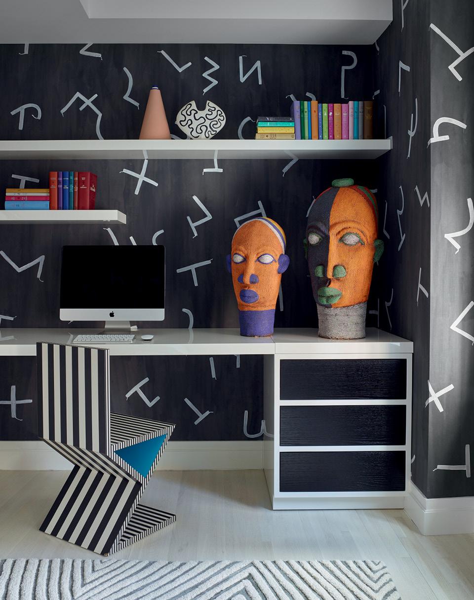 Келли Бехун, которая начинала дизайнерскую карьеру, работая в команде отельера Яна Шрагера, а также в бюро у Андре Путман и Филиппа Старка, сделала этот проект с чистого листа. Ее заказчица приобрела две с половиной квартиры в доме 1940‑х годов, чтобы объединить их в одну. Получилось чуть больше пятисот квадратных метров. При этом в квартире не сохранилось оригинальных архитектурных деталей, которые могли бы стать отправной точкой для интерьера, так что Келли и ее заказчица имели полную свободу рук и решили наполнить пространство цветом и орнаментами, не забывая, конечно же, и о предметах искусства.