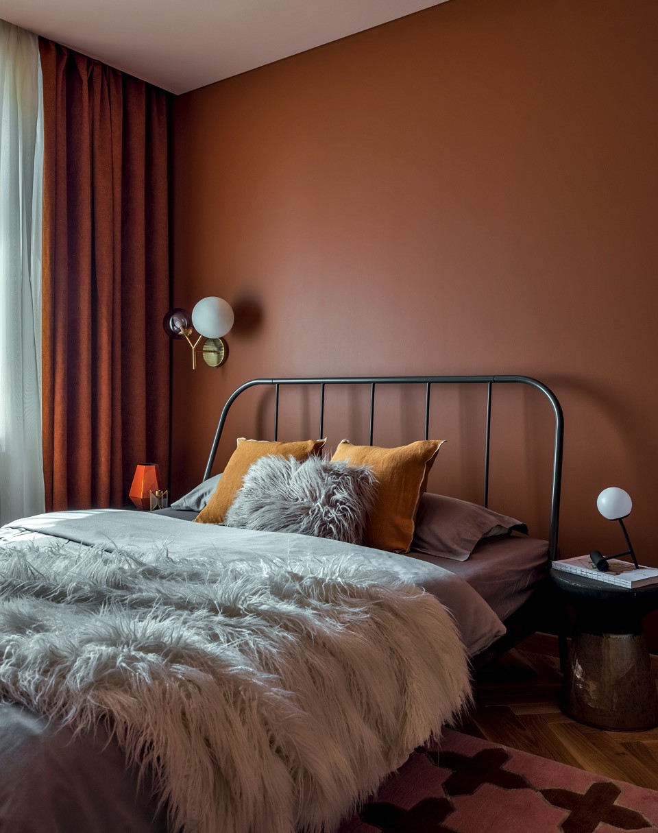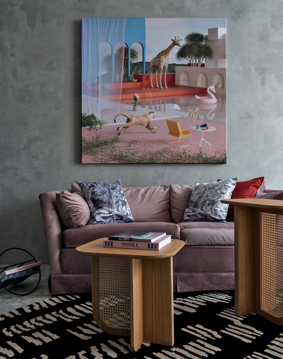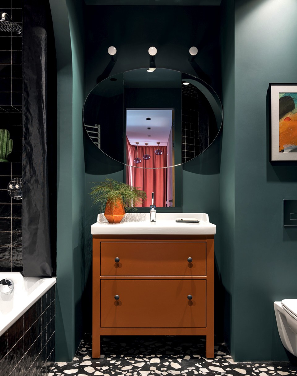 В целом интерьер получился нарядным и при этом очень практичным. Например, стены в гостиной отделаны декоративной штукатуркой, за которой легко ухаживать, а в спальнях они выкрашены моющейся краской. Полы в общей зоне и ванной комнате сделали из терраццо. Этот же материал использовался для подоконников. “На заливку пола ушло месяца три, а всего на ремонт — девять. Это был долгий эксперимент, и он удался: получилось износостойкое и модное покрытие”, — говорит дизайнер.