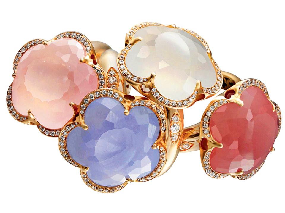 Древ­ние бо­ги­ни ста­ли “про­то­ти­па­ми” но­вой се­рии ко­лец Bon Ton Goddesses с кам­ня­ми па­стель­ных то­нов. Розо­вый кварц — Афро­ди­та, мо­лоч­ный кварц — Селе­на, го­лу­бой или ро­зо­вый хал­це­дон — Изи­да и Лакш­ми. Выпу­сти­ла эти укра­ше­ния мар­ка Pasquale Bruni.