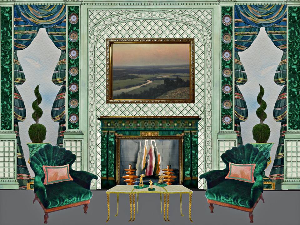 Декоратор Кирилл Истомин оформил выставочное пространство Christie’s в Лондоне (на фото — эскиз интерьера), где в ноябре пройдет выставка-продажа русского искусства. Вдохновившись Малахитовым залом Эрмитажа, он воссоздал фантазийное пространство зимнего сада, композиционным центром которого стал один из лотов аукциона — пейзаж Константина Крыжицкого.