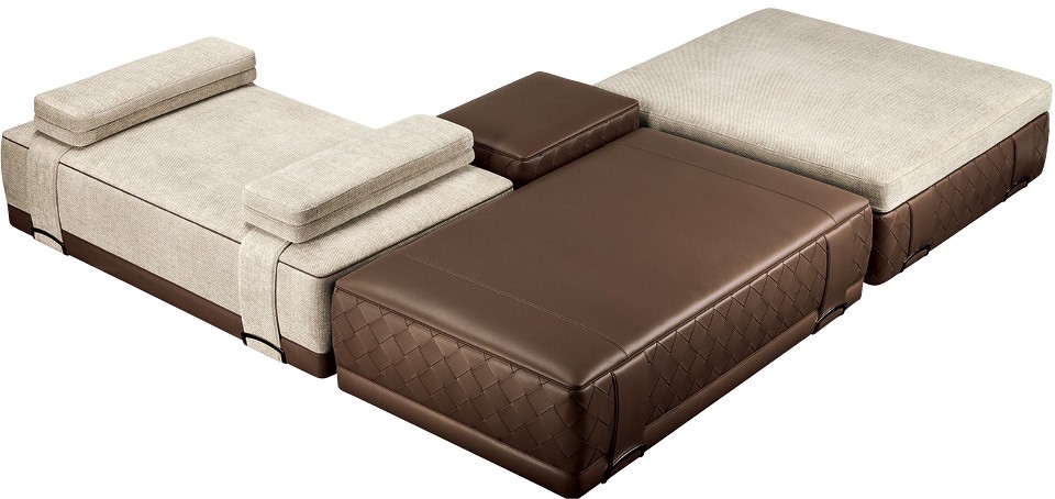Строго говоря, модель Grant — это не диван, а набор пуфов. Составные элементы есть в текстиле и коже, а комбинацию из них вы можете составить любую.