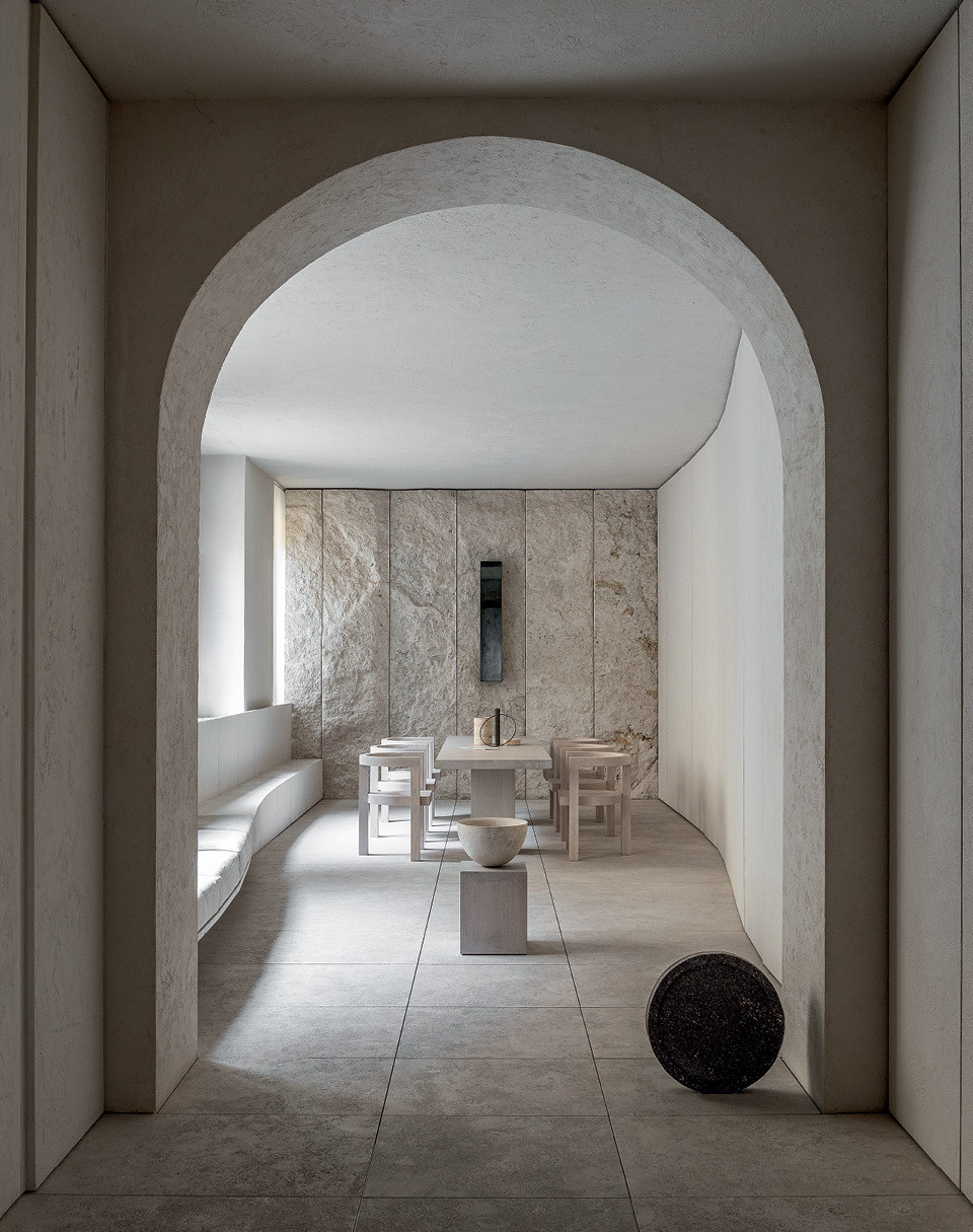 Генри Тими — эстет, перфекционист и аскет. “Мой дом стал пространством для экспериментов, демонстрирующих мои взгляды и мою сущность”, — признается дизайнер. Он спроектировал минималистичный интерьер, задействовав в оформлении лишь натуральный камень, тонированную древесину, бетон, металл и декоративную штукатурку. Монохромность, скромный набор отделочных материалов, да и общая атмосфера интерьера вызывают ассоциации с монашеской кельей. “В своей концепции я хотел подчеркнуть, что можно использовать только материалы природного происхождения. Мать-природа сделала нам подарок: у нас есть возможность брать то, что она дает, и трансформировать это своими руками в то, что нам нужно”, — добавляет хозяин.