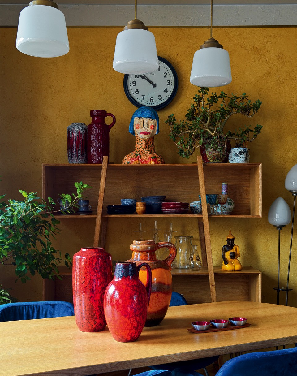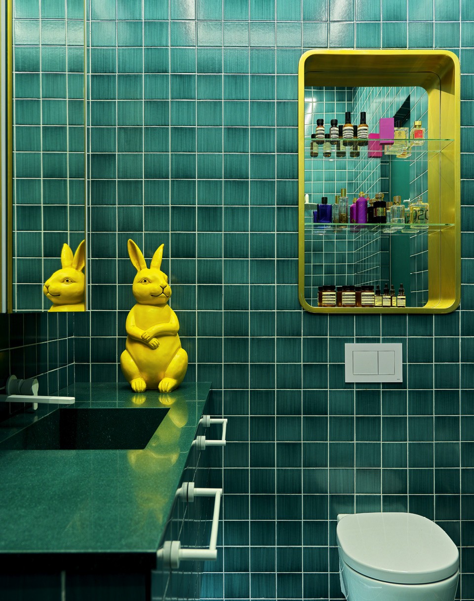 Дарья говорит, что их с Наилей и Денисом роднит страсть к путешествиям, а любимые направления всех троих — Бали и юг Италии. Тяга к южной красочности, воплотившаяся в интерьере прошлой квартиры, победила и теперь. Проект несколько раз менялся, пока не приобрел нынешний вид. Ничего лаконичного тут в итоге не осталось, а цветовая гамма точно такая же, как и на старом месте. “Мои заказчики часто что-то привозят из путешествий. Поэтому интерьер должен быть принимающим, чтобы эти предметы здесь выглядели естественно, — рассуждает Василькова. — А минималистичный интерьер как сделал, так и живешь”.