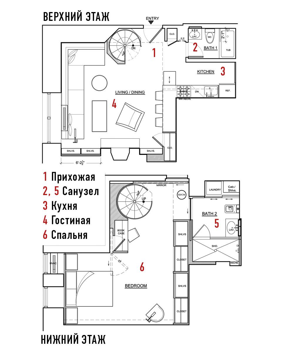 Квартира устроена необычно: спальня находится на первом этаже дома, а общественная зона на втором. Обычно бывает ровно наоборот, но дело в том, что и вход в квартиру находится здесь на втором этаже, а вниз