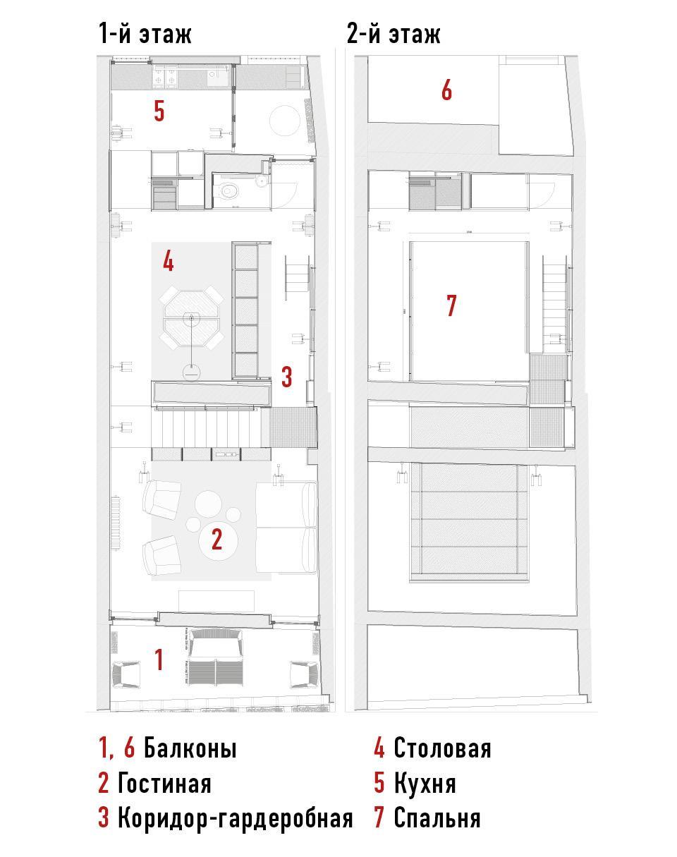 Столовая разместилась в самом центре общественной зоны и занимает небольшую нишу. Одна из ее стен облицована эбеновым деревом, вторая обита алькантарой, на полу — мрамор. Прибавьте к этому марокканский ковер и латунь, использованную в отделке винтажного стола, и возникнет вопрос: не слишком ли много здесь намешано? Но архитектор проблемы в этом не видит: “Сочетание разных материалов придает пространству глубину”, — считает он.