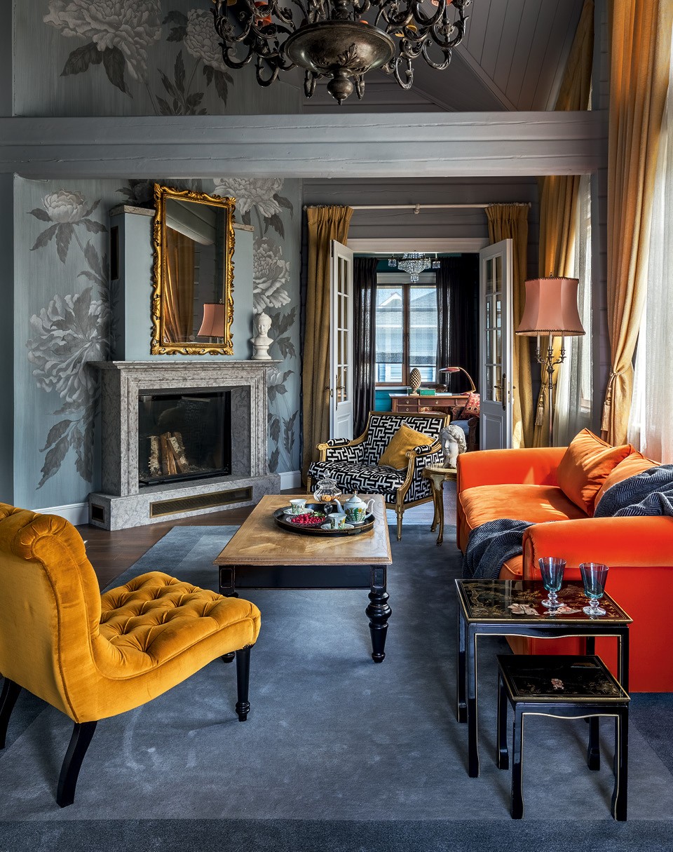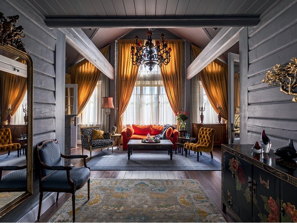 В свой новый загородный дом заказчики Аллы Шумейко переехали практически в одночасье: заглянули сюда под Новый год и остались. “Они сказали, что у них не было ощущения нового интерьера, наоборот, им казалось, что они тут уже давно живут”, — говорит Алла. Создать такую атмосферу помог антиквариат, который здесь повсюду. Декоратору очень повезло с клиентами — у них не было абсолютно никаких предрассудков по поводу старой мебели. “На первой же встрече хозяйка выразила желание поставить в столовой старинный буфет. С него-то и началась история этого интерьера”, — продолжает Шумейко.