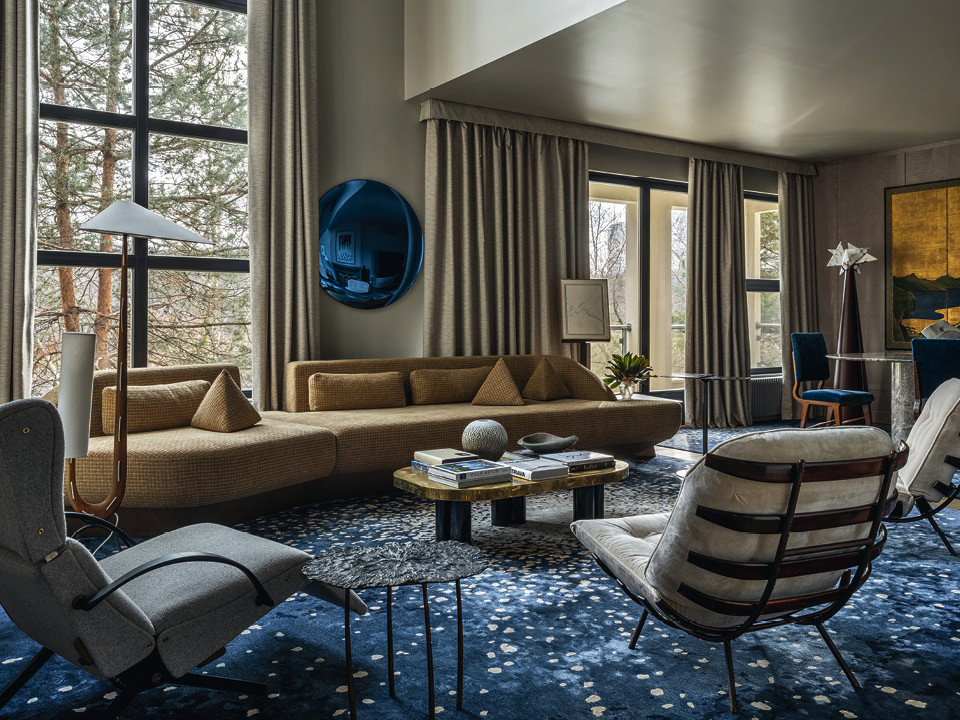 В этом проекте у Ираклия Зария получился неожиданный, но красивый союз — дизайнерской классики ХХ века и работ советских художников-нонконформистов.